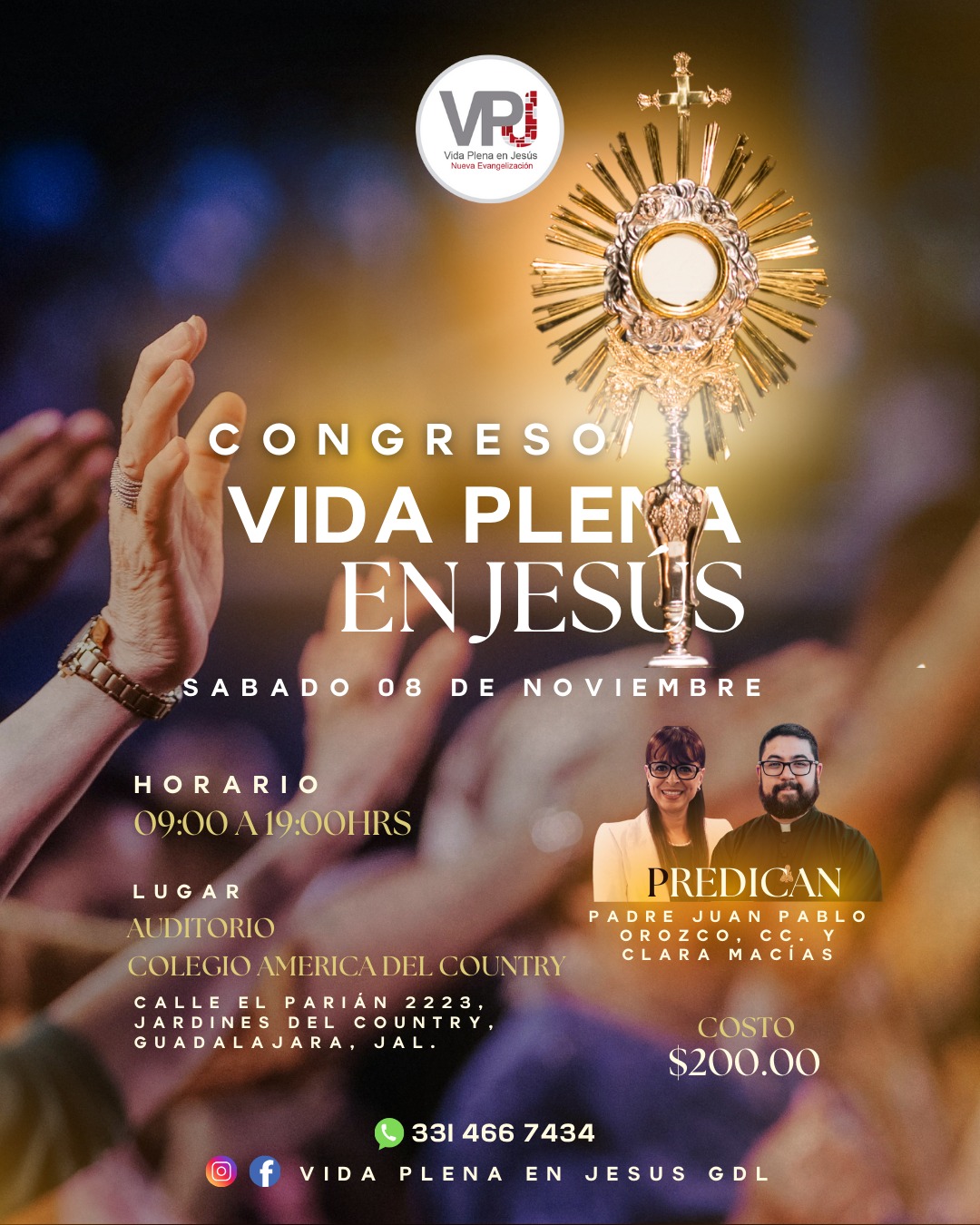 Destacadas noviembre 8 @ 9:00 am - 7:00 pm Congreso Vida Plena en Jesús Instituto América Jardines del Country Calle parian # 2223 Jardines del Country, Guadalajara, Jalisco